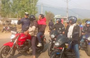 दाङ । जिल्ला ट्राफिक प्रहरी कार्यालय दाङका ट्राफिक प्रहरी प्रमुख प्रहरी निरीक्षक राजेश शाहीका अनुसार नियम विपरीत चलाएका सवारी साधनहरु धमाधम नियन्त्रणमा लिएको जानकारी दिनुभएको छ । शुक्रबार दाङ जिल्लाका विभिन्न स्थानमा दिनभर गरिएको सवारी चेकजाँचका क्रममा ती सवारी साधन नियन्त्रणमा लिएर आवश्यक कारबाही गरिएको दाङ ट्राफिक प्रमुख शाहीले बताउनुभयो । उहाँका अनुसार हेलमेट नलगाएर मोटरसाइकल चलाउने ३ जना राखेर मोटरसाइकल चलाउने मादक पदार्थ सेवन गरी सवारी चलाउने काजगपत्र साथमा नबोकी सवारी चलाउने कारबाहीमा परेका छन् ।