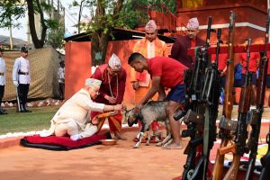 शनिबार नेपाल प्रहरी सशस्त्र प्रहरी गण नम्बर १ नक्सालस्थित मौलोमा आईजीपी थापाले पूजाअर्चना तथा सङ्कल्प पूजा गरेका हुन् । नेपाल प्रहरीले परम्परागत रूपमा मनाउँदै आएको उक्त पूजाअर्चनाको क्रममा प्रहरी महानिरीक्षक थापाले बली पूजा गर्नुका साथै निशानमा पञ्जा छाप समेत लगाएका छन् ।