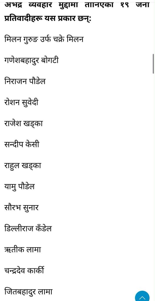 गुण्डा नाइके चक्रे मिलनसहित १९जनालाई म्याद थपका लागि अदालत लगियो