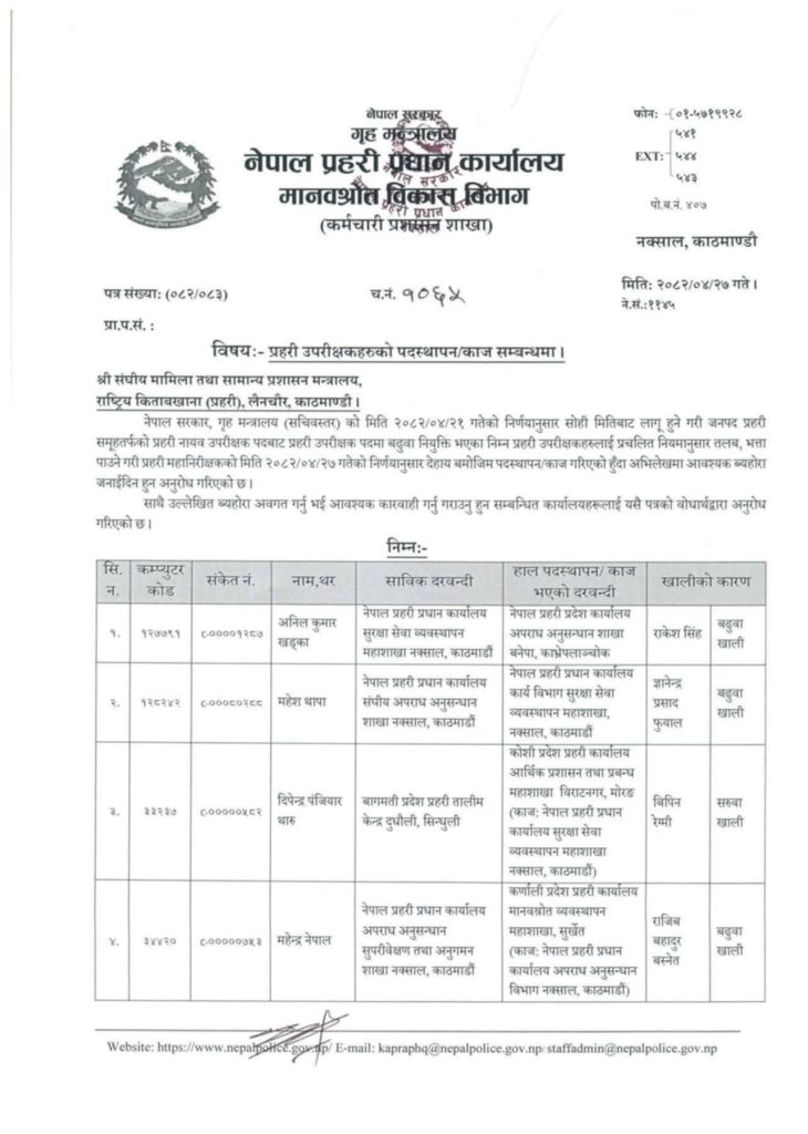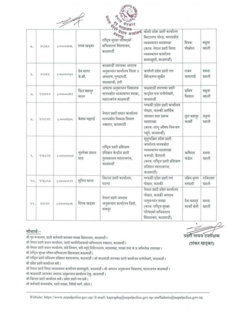 जनपद प्रहरी समूहतर्फको प्रहरी नायव उपरीक्षक(डीएसपी) पदबाट प्रहरी उपरीक्षक (एसपी) पदमा बढुवा भएका ११ जनाले जिम्मेवारी पाएका छन् ।